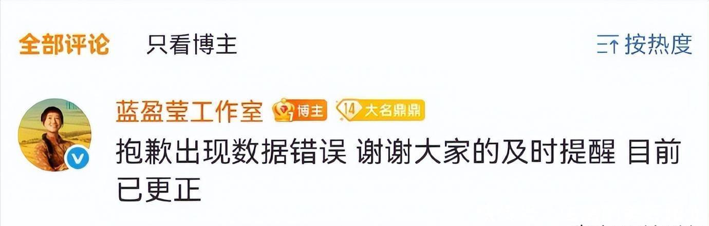 然而,就在《生万物》完播后,蓝盈莹工作室在社交平台发布了一条数据错误的消息,结果引来了网友的强烈反响。大家纷纷指责,这部剧的成功并非她一个人的功劳。虽然工作室很快做出了更正并道歉,但这一事件无疑影响了她的公众形象。加上之前有人提到蓝盈莹在《浪姐》中的表现过于张扬,喜欢引起注意,这些“野心”也在某种程度上影响了她的口碑。